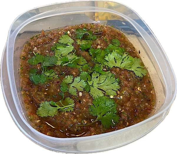 That’s just my ratio. And just the start. Play with it. Throw some cilantro leaves on top when done. Add more of one and less of the other. Add more spices if you like. Mexican oregano and cumin are a good start. Try different chiles. Go beyond processing and turn that shit into a red smoothie. Makes a great red sauce. If you do that add some avacado and/or cream to make it more smooth.